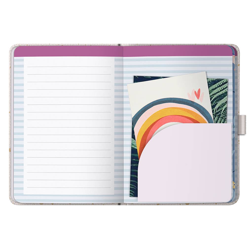 Featuring a durable faux leather, gold spray design with gold foil accents and three handy pockets to help keep loose items secure, the diary also has an elastic closure to ensure everything stays in place.