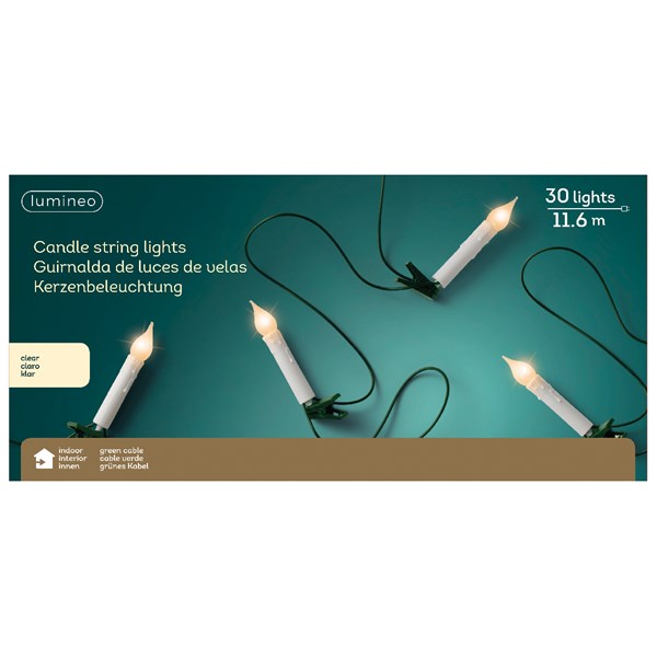 String of 30 clip-on slim warm white candle lights to decorate the Christmas tree