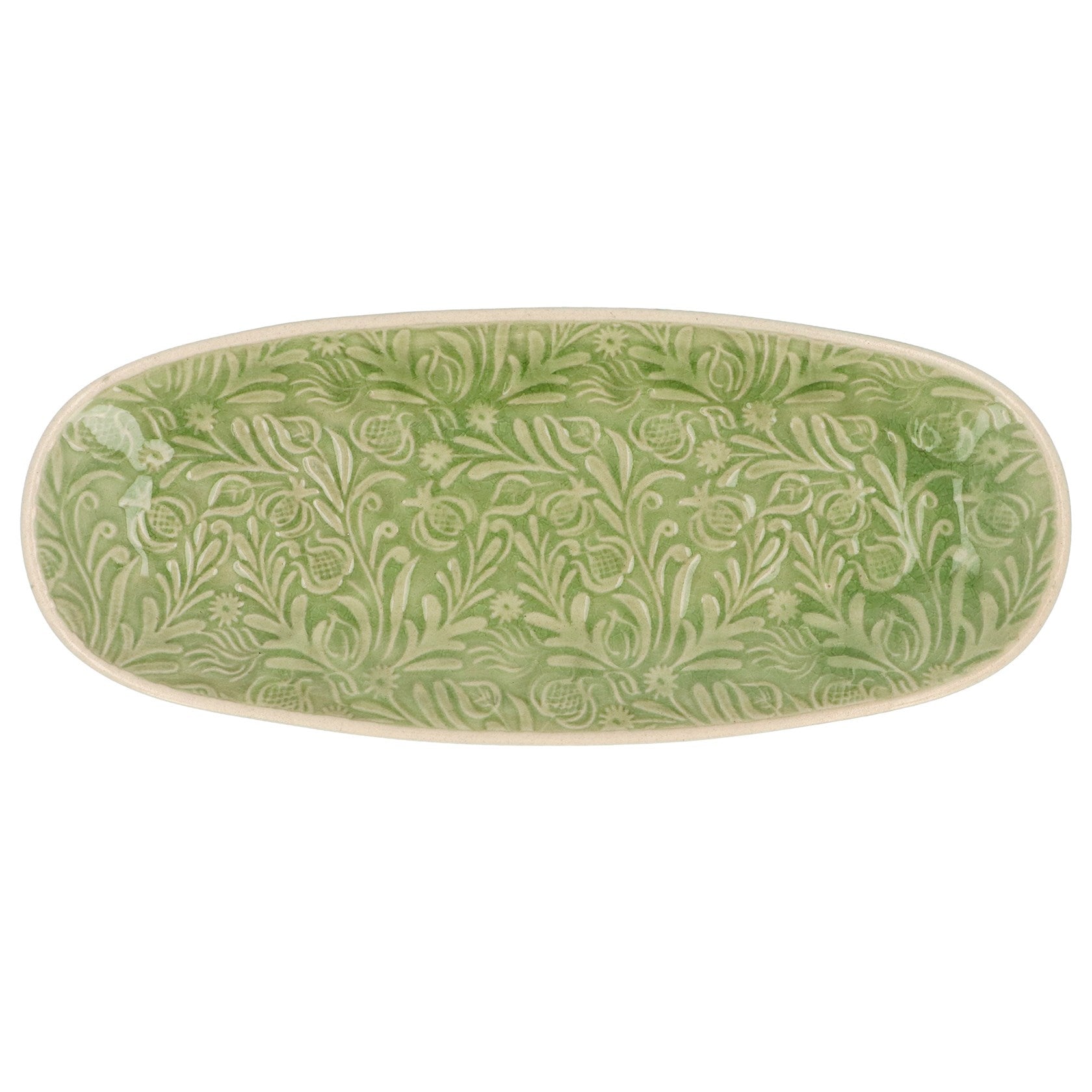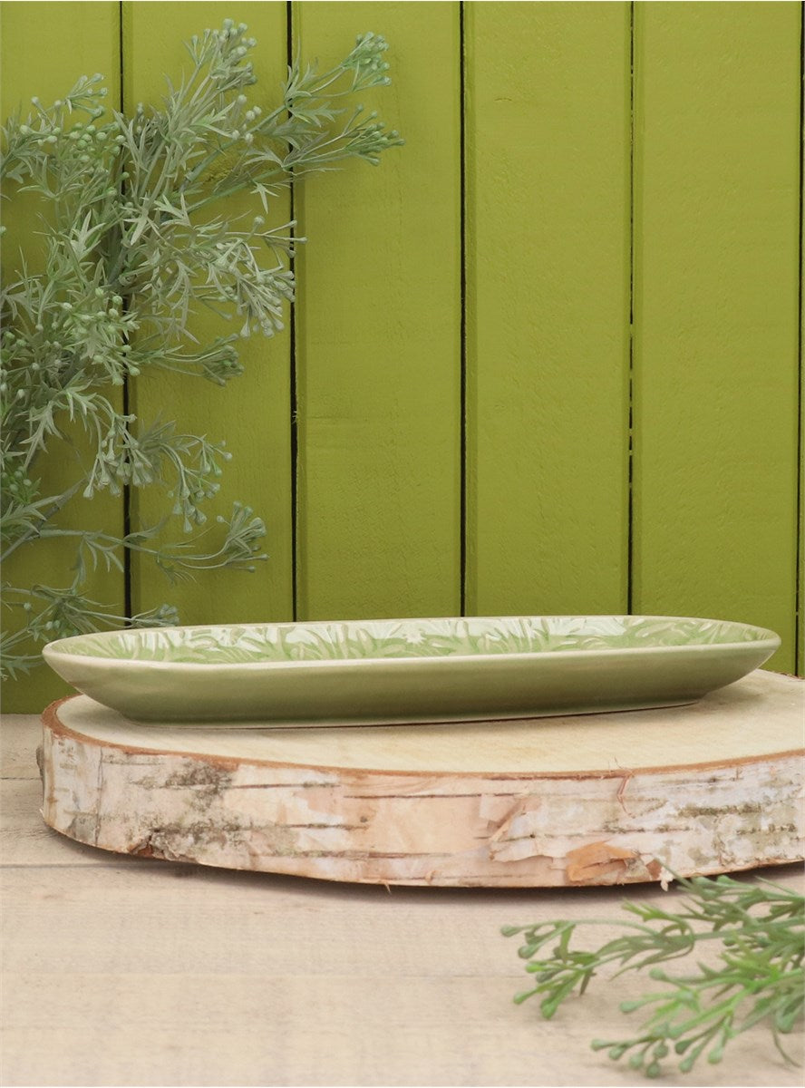 Pretty green 'Country Flowers' oval stoneware by Gisela Graham.