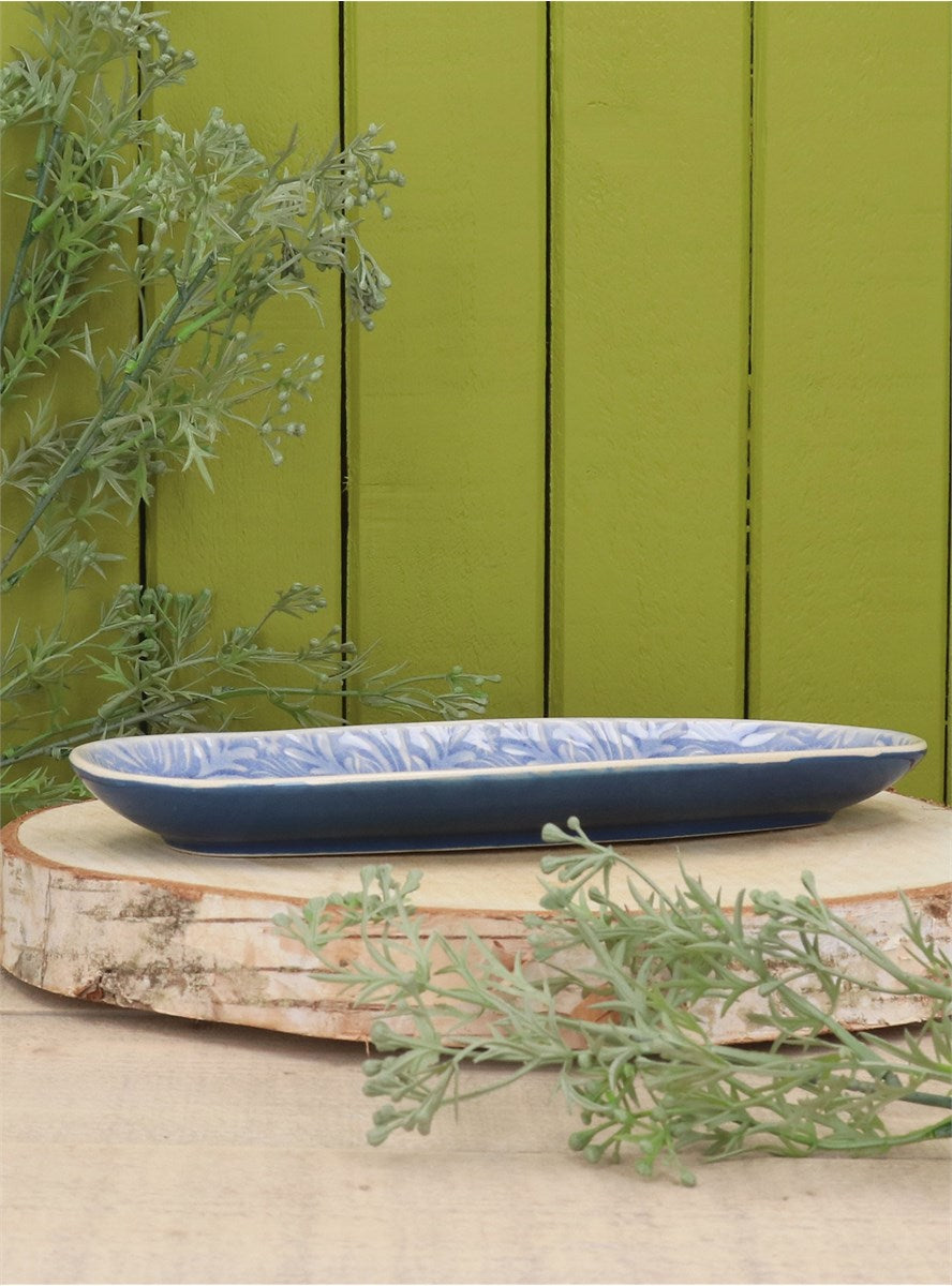 Pretty blue 'Country Flowers' oval stoneware by Gisela Graham.
