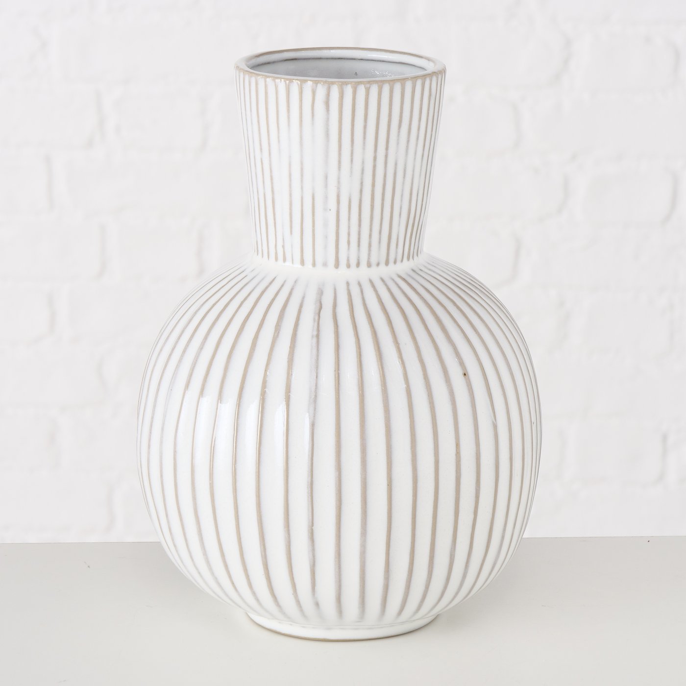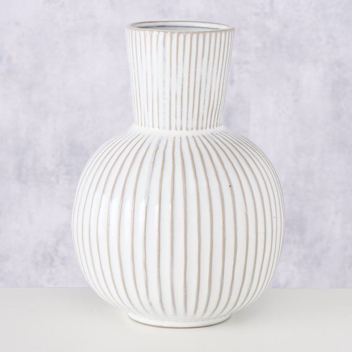 Classic white striped ceramic vase with a matt finish. Perfect addition to any room. Just add flowers!