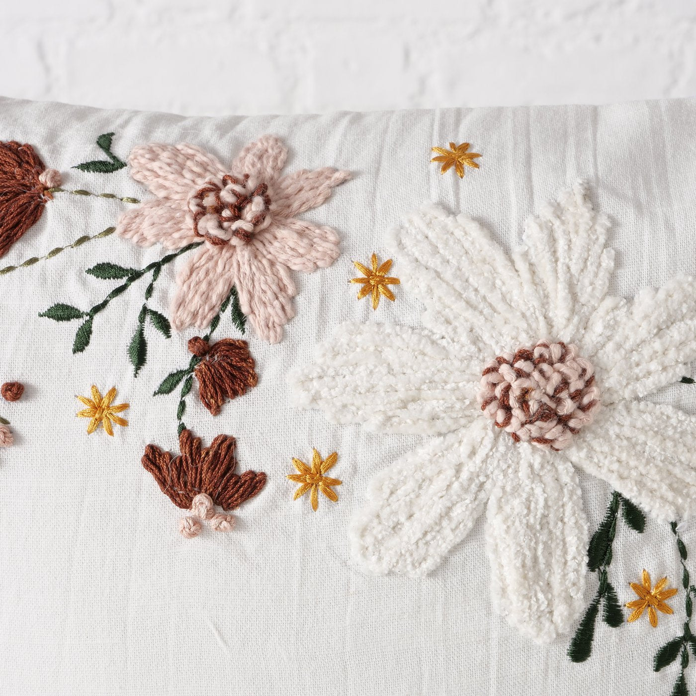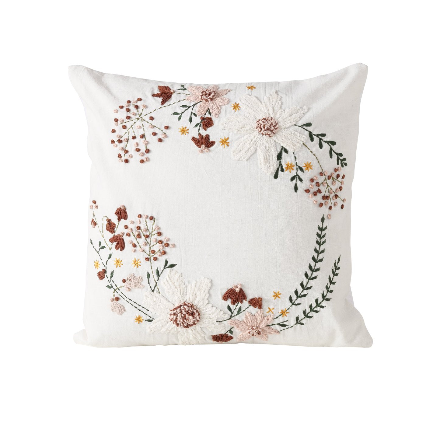 Beautiful handwoven cotton cushion with a pretty floral design. This nature inspired design and colours would suit any living area or bedroom. Comes with a polyester filler.