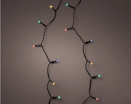 String of 192 multi-coloured led lights on a black cable wire with a 6 hour active light timer