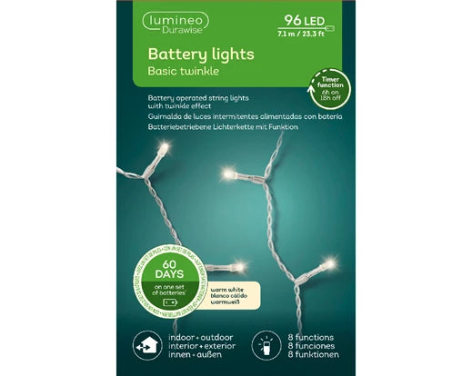 String of 96 warm white led lights on a transparent cable wire with a 6 hour active light timer