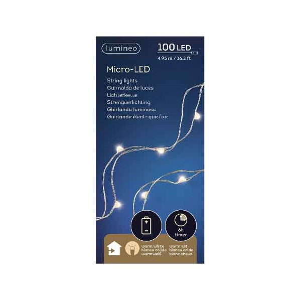 String of 100 warm white micro led lights on a silver wire