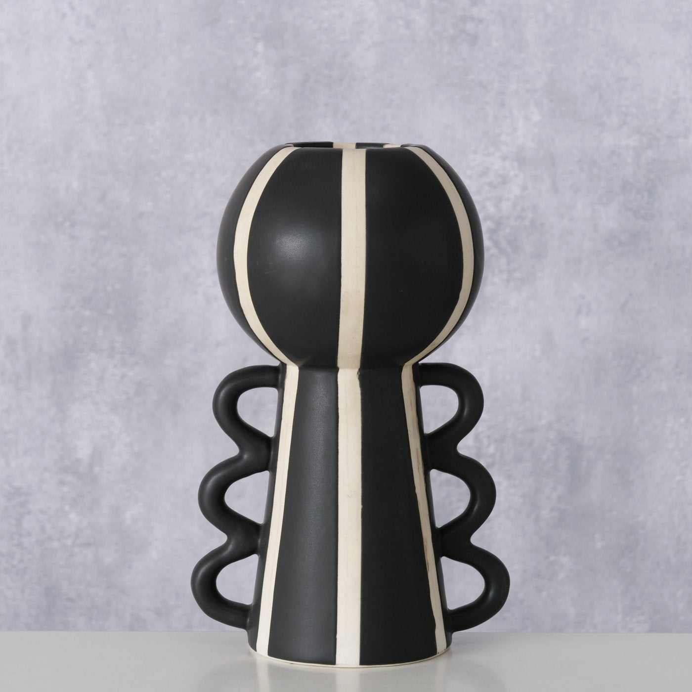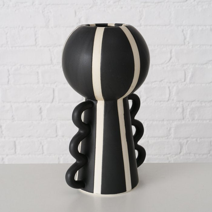Modern hand-crafted black and white striped ceramic vase with a matt finish. Perfect addition to your monochrome room.